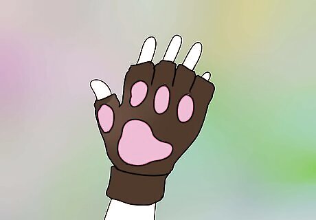 Make cat claws. Another way to look like a cat is to wear cat claws. There are several different ways you can make it look like you have a cat’s claws. Sew fabric claws onto gloves, and wear the gloves. Put fake nails on your nails, and file them into claws. Wear finger cuffs with claws on them.