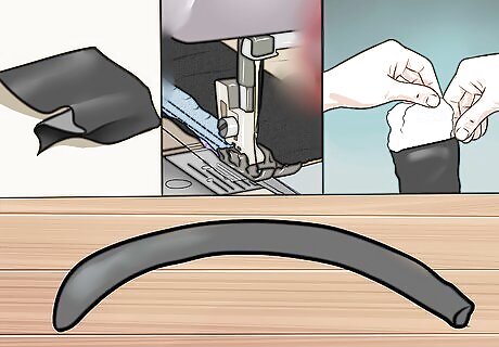 Wear a tail. Make a cat tail to wear as part of your costume. Attach it with safety pins to be able to wear it with any outfit. Get fleece material in the length you want your tail and about four inches wide. Fold the material in half lengthwise with the right sides together and cut a rounded tip to the end of the tail. Glue or sew the edges together leaving the top edge open. Turn the fabric so the right sides are out. Stuff the tail with stuffing. You can use filler, newspaper, or other fabric for the stuffing. Glue or sew the top together and attach it to your shirt with safety pins.