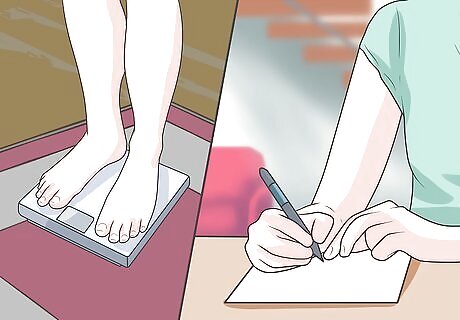 Find measures of accountability for each other. A point where some dieters go awry with weight loss, is not staying accountable. However, when you have a partner to lose weight with, setting methods of accountability will help both of you stay successful over time. Measures of accountability are things you should do regularly, and usually for the rest of your life, to make sure you meet your weight loss goals and then keep the weight off long-term. Both of you should pick a day during the week where you both hop on the scale. Studies have shown that people who weigh in regularly are able to be more successful long-term. Consider keeping a food diary. This can help you stay accountable day to day. But if you're having trouble losing weight or are gaining a little bit, your partner can look over your food journal (or gently remind you) of times you've overeaten or snacked a little too often. A trick is to save a pair of "skinny" jeans or pants. Pick out a pair for each other and keep these in your closet. Anytime you need a quick reminder pull those on.