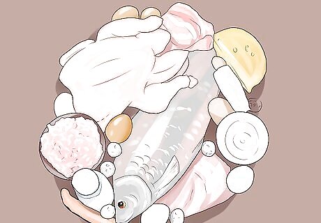 Prepare lean protein sources you both enjoy. When both of you are coming up with your meal plan, you'll need to select protein sources to include in your meals. Protein is essential to weight loss, so both of you will need to focus on this nutrient in your diet. Protein is not only an essential nutrient for your body, it's also important in the weight loss process. It helps support your lean muscle mass, metabolism and fuels your body through the day. Protein also takes a longer time to digest in your stomach. This leaves you feeling more satisfied longer compared to other nutrients like carbohydrates. Work together to make sure both of you are eating protein at every meal. You should aim for at least one to two servings of protein at each meal. Measure out 3 – 4 oz (85 – 113 grams) of protein per serving. Stick to lower calorie lean protein sources like: poultry, eggs, low-fat dairy, lean beef, lean pork, legumes or tofu.