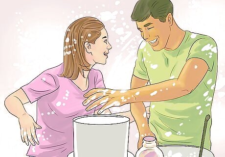 Find non-food activities to enjoy together. While losing weight together as a couple, you have each other to hang out with and you can find healthy activities you can do together. It can be hard to stick to a diet if your friends or family are always going out to dinner, skipping workouts or snacking. Having someone on your team can make it a lot easier to stick to your diet and healthy lifestyle. If you normally do a lot of food-centered activities (like going out to dinner, going to get happy hour drinks or having popcorn at the movies), find other things that you can enjoy together that don't have anything to do with food. For example, instead of going out to breakfast on Sunday morning, plan a morning hike. Or instead of ordering in pizza on Friday night, make your own healthier pizza at home.