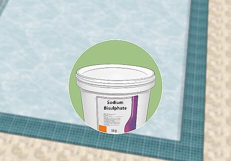 Opt for sodium bisulfate for a gentler solution. Sodium bisulfate often comes in granulated form, and depending on the manufacturer’s instructions, you either add them directly to the water, or dissolve them in a bucket then pour them into the pool. Sodium bisulfate helps stabilize your pool’s pH after it’s lowered, so it may be a better option for long-term maintenance. While it’s still a dangerous chemical, sodium bisulfate isn’t as harsh as muriatic acid. However, it may not work as quickly, and often lowers the total alkalinity (TA) of your pool more than you may want. Use the packaging and your pH readings to determine how much sodium bisulfate to add to your pool.