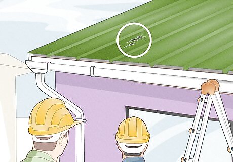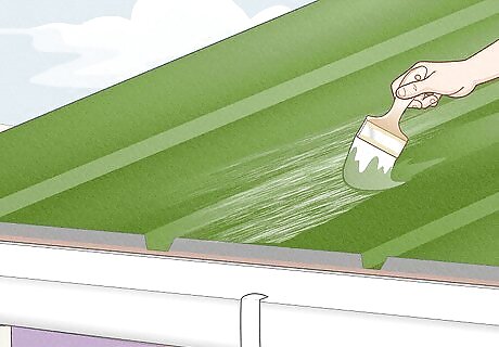 Use touch-up paint to cover up any damage. Inspect your roof for scratches regularly and cover-up new ones as soon as they appear. Scratches can spread and cause corrosion over time, so it's best to deal with them as soon as possible. Use a paint pen made by the metal manufacturer of your roof. This can help you get the best color match! You can also use a small paintbrush and metal touch-up paint to cover the scratched area.