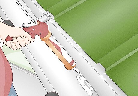 Holes or vulnerable spots in your gutters can lead to water damage. After cleaning your gutters, wait for them to dry. Next, use butyl-based gutter caulk to fill any holes on the inside of your gutter. Plugging up any holes in your gutters will prevent water from dripping onto your roof and home and the potential corrosion that would cause. Make sure to do this after you've already cleaned your gutters! You can't apply the caulk efficiently when dealing with debris or old caulking material stuck to the gutters.