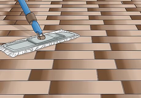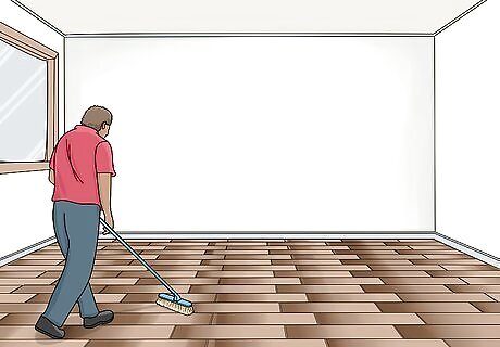 Sweep the floors every day with a soft-bristled broom. Regularly sweeping your hardwood floors will reduce dirt and grit buildup, which can scratch the surface of the wood. Take a soft-bristled broom to your floors and sweep up any dust or dirt from the surface, particularly from high-traffic areas such as the entrance to a room or a hallway. Only use a soft-bristled mop so you don’t scratch the surface of the wood.