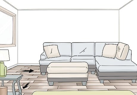 Attach felt pads to your furniture legs and edges to avoid scratches. Place felt furniture pads on all of the furniture on top of your hardwood floors so they don’t scratch the surface. Add felt pads to any areas that contact the floor such as the edges or corners of sofas. You can find felt pads at department stores and online.