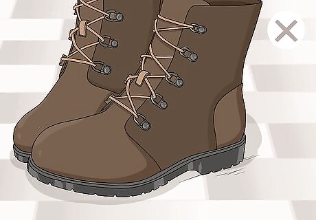 Don't wear shoes on your hardwood floors. Shoes can scuff hardwood and cause wear and tear over time. Be extra careful about wearing cleats or shoes with heels on your hardwood floors since they can potentially damage them. Oils from your bare feet can actually degrade hardwood over time. Your safest bet is to only wear socks when walking on your floors.