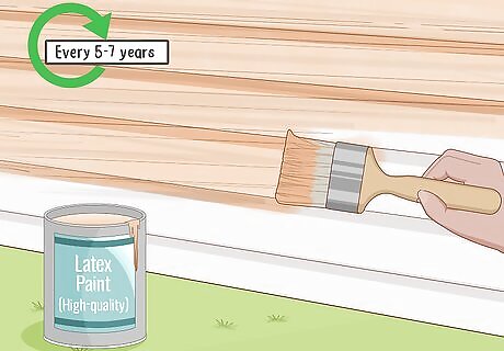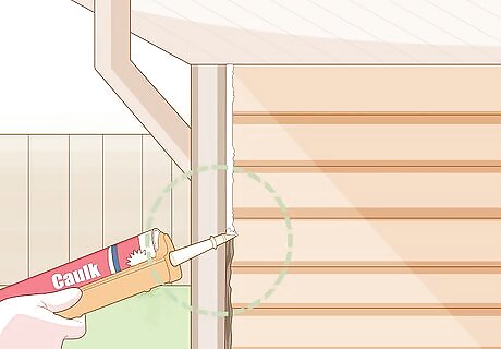 Replace damaged or missing caulk as soon as you notice it. Wood siding requires caulking around doors and windows, and often in areas like corners, in order to prevent water infiltration. If you see loose or missing caulk, scrape out any remaining loose bits with a paint scraper blade. Then, use a caulking gun to squeeze out a steady, even bead of caulk to fill in the missing areas. Make sure you choose a caulk that’s designed for exterior use on wood surfaces. Wait until it’s at least 45 °F (7 °C) outside to apply exterior caulk. Allow the caulk to dry for at least 24 hours before disturbing it or exposing it to water.