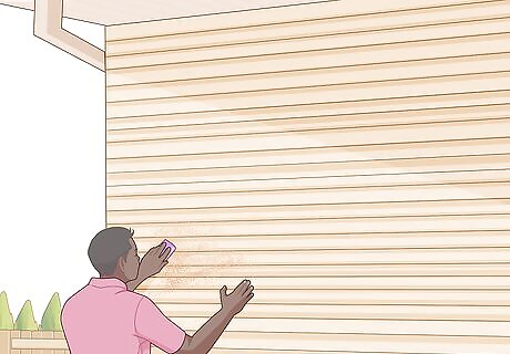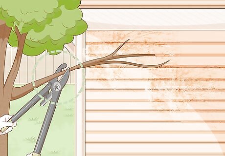 Cut back any tree limbs or shrubs that are touching the siding. It’s important that no type of plant life ever remains in contact with wood siding. Otherwise, the plants will serve as moisture delivery systems to the siding, keeping it damp and promoting mildew and rot. At the very least, there should be 1 ft (30 cm) of space between your siding and any plant life. While the shade provided by trees can help keep your home cooler in summer, it can also promote mildew formation on your siding in the shaded areas. You’ll have to weigh the benefits versus the costs of this trade-off.