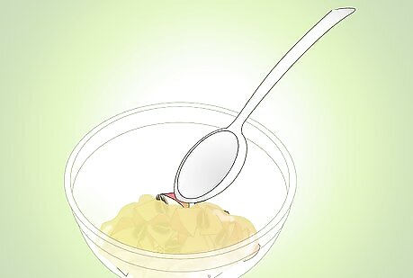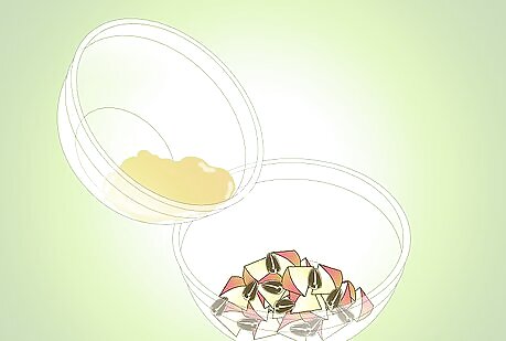 Put a tablespoon of almond butter, rodent food and dried fruits into a bowl.