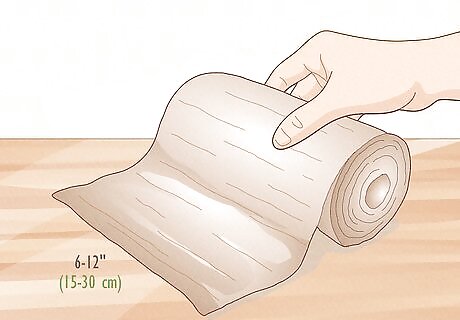 Select a roll between 6 to 12 inches (15 to 30 cm) wide to give your wreath enough fluff. Use burlap between 6 to 8 inches (15 to 20 cm) wide for a wreath that is standard in terms of fluffiness. If you'd like a fluffier wreath, use burlap that is 12 inches (30 cm) wide. Don't use burlap 6 inches (15 cm) or less—your wreath won't have enough fluff to create its signature look. To avoid stuffing your wreath, avoid using burlap more than 12 inches (30 cm) wide.