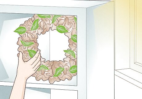 Store your burlap away from sunlight to avoid fading. Direct sunlight can fade burlap, so keep it in a closet with your other decorations when not in use. Try placing it somewhere cool and moisture-free so that it doesn't absorb any odors. Let your burlap wreath sit in fresh air after removing it from storage. This will help remove any odors. Sprinkle a small amount of baking soda and water onto your wreath to combat smells.