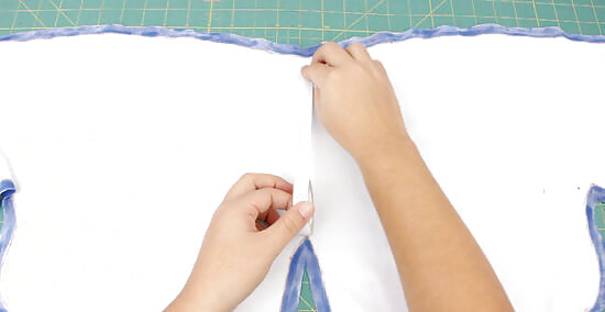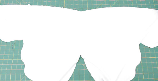 Cut around the non-folded edges of the wing template. Do not cut along the folded edge! Only cut along the curves and other parts of the wings. Use a sharp pair of fabric scissors to make long, even cuts in the fabric. Be careful not to create any jagged edges as you cut. Remove the pins and the paper template after you finish cutting and open up the wings. Place them with the right (outer or print) side of the fabric facing up. If the fabric is the same on both sides, then this won’t matter.
