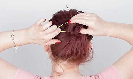 Clip your hair into a bun. Once your hair is saturated in your hair mask, you will want to clip up your hair into a bun or make a ponytail. Wrap a towel over your head and leave it in overnight. Leaving it in overnight works the best.