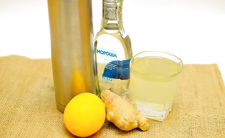 Add the remaining ingredients. Once the puree and honey is mixed, add 2 fl oz (59 mL) of ginger ale, 1 ⁄2 fl oz (44 mL) of vodka, and 2 teaspoons (9.9 mL) of freshly squeezed lemon juice. Then close the lid of the cocktail shaker tightly. Make sure it's closed completely, as you don't want to end up with a mess.