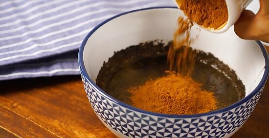 Mix in 1.5 tbsp (22.5 g) of cinnamon. Take a spoonful of cinnamon and pour it into your coffee ground mixture. Use a wooden spoon to mix up the ingredients until they form a thick paste that smells great! Cinnamon is slightly spicy, so it will help to bring blood flow to the area and wake up your skin even more.