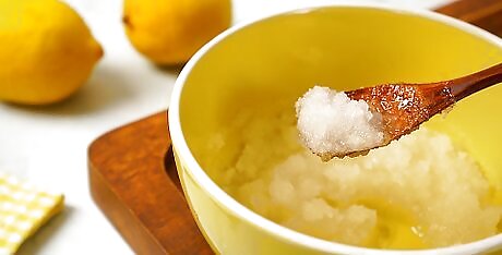 Add 2 cups (400 g) of granulated sugar to a bowl. Grab a large bowl and pour in your granulated sugar. If you see any lumps, use a fork or a whisk to smooth them out before you add your next ingredients. Sugar is a great natural exfoliant since it’s slightly coarse. For a lemon salt scrub, use sea salt instead of sugar.