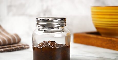 Store the mixture in an airtight container. If you don’t want to use your coffee scrub right away, pour it into a glass jar and seal it with a lid. Try to use your foot scrub as soon as you can to get the most benefit out of your ingredients. The sooner you use your scrub, the fresher it will be.