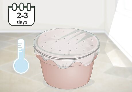 Cover the pot for 2-3 days with plastic wrap and keep it in a cool, dark place. Plastic wrap helps maintain a humid environment and encourages your grass to sprout quickly. After you cover the pot, use a toothpick to poke a few holes into the plastic wrap so air can circulate. Store the pot in a cool and dark place, such as a kitchen cabinet or closet. After three days or when you see sprouts, remove the plastic wrap.