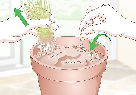 Plant new seeds when the grass starts to yellow or wilt. Cat grass doesn’t reproduce or stay alive for much more than 2-3 months. When you see your grass turning yellow or drooping, remove it from the pot and replace it with new seeds. Within a few days, you’ll have a new pot that’s growing healthy cat grass! You don’t need to replace the grass after your cat chews it all since it will grow back quickly until they start to die.