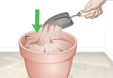 Fill a pot with planting soil until it’s 2 inches (5.1 cm) from the rim. Use an organic potting soil, so it’s safe for your cat to dig into. Choose a pot with a wide opening on top so the grass can spread out as it grows. Avoid using any fertilizers in your pot since cat grass grows and dies within a few months.