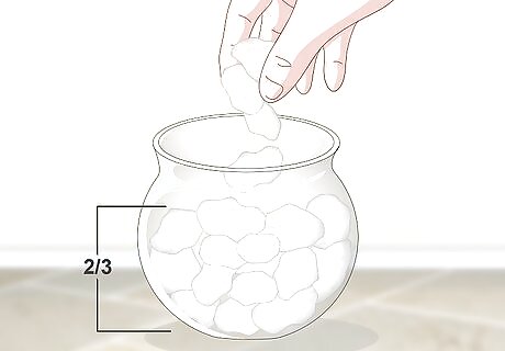 Fill a glass bowl or jar two-thirds full with grow stones. Grow stones are used in many hydroponic systems and work well to provide nutrients to the water. Use a shallow glass bowl or jar and put the stones inside. Leave a third of the container’s space empty on top. You can buy grow stones online or from your local gardening store.