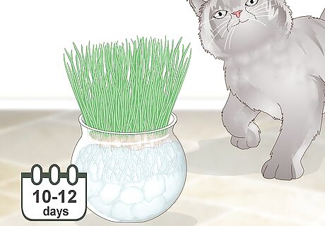 Wait 10-12 days before letting your cat eat the grass. After 2-3 days, your seeds will form sprouts, but the grass won’t fully form until about 10-12 days. Once the grass is about 4 in (10 cm) tall, your cat can chew on it.