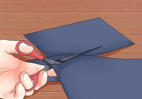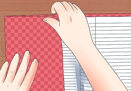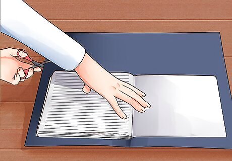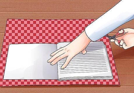 Start covering the raw edges of the inside covers. Right now the inside of your journal probably looks less than perfect – it's just the exposed, raw edges of fabric and nothing else. To get rid of this, we'll cover it with cardboard and fabric. To get started: Cut out two pieces of lightweight cardboard or heavy cardstock that's about 1" (2.5cm) smaller than the front and back cover. Cut out two pieces of fabric (a different fabric) that's 1-2" (2.5-5cm) larger than the cardboard you just cut out.