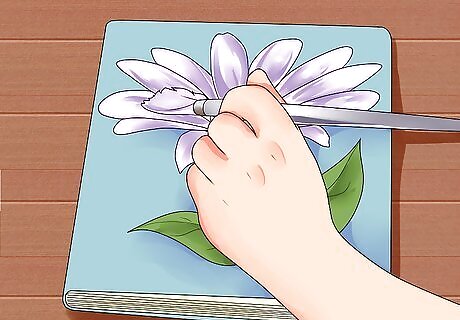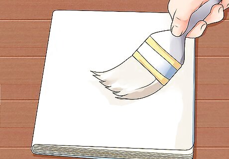Brush on pure white "chalk paint" to the cover and let it dry. "Chalk paint" is going to give your cover a vintage-y, worn feel. Consider it the journal equivalent of distressed cabinets or jeans. Even though it's only on the bottom layer, it's vintage powers will seep through in places just enough to give it that touch. To do this, open the journal up. This way you can paint both sides at the same time and they can dry simultaneously. Make sure it's dry before you continue any more decorating. It should take roughly 2-3 hours to dry. Alternatively, you could leave it overnight and come back to it in the morning.