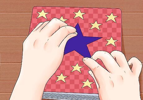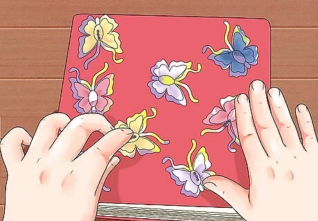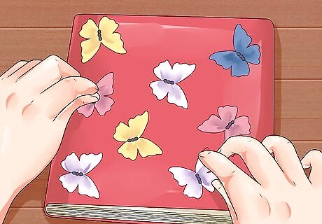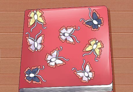 Plan out your design. What kind of look do you want your journal to have? Lots of this will be determined by what you have laying around. Here are some ideas: You could take extra felt bits and make a pretty design that's sewed or glued on You could use buttons or other small decorative items for flair You could use glitter, ribbon, or other shiny, eye-catching additions