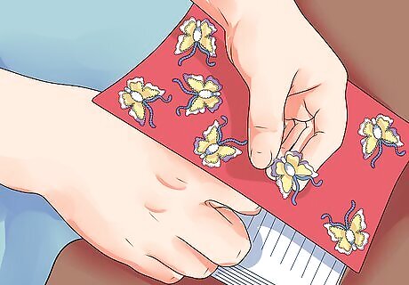 Decorate your front. You didn't do all that planning for nothing. Now's the time to decorate your front (before you attach it to anything else). So get to sewing, gluing, taping, whatever you see fit. And if you're decorating the back, do that side, too. If you're using anything that needs to dry, make sure you give it adequate time to do so before you continue on. If it's not, you could wind up with a mess on your hands while finishing up.
