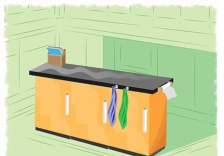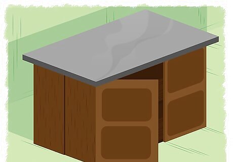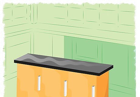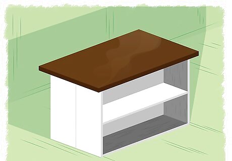 Add a countertop. Once the cabinets are placed, make or purchase a countertop to cover all pieces. You can use a variety of materials, from butcher's block to granite. Even a poured slab of concrete (stained, textured, or left alone) can make an excellent countertop. It will need to be sized according to the dimensions of the cabinet combinations you've chosen; just be sure to leave an extra two inches in both length and width, in order to create the lip of the counter.