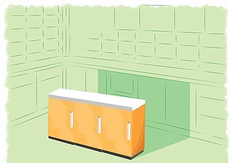 Buy kitchen cabinets. Purchase any combination of kitchen cabinets that do not have a countertop already attached (as this will allow you to combine them into a single unit in your preferred arrangement by adding a single countertop). You can buy cabinets which resemble or are the same as your existing cabinets, or you can get cabinets which are different but match. Pay attention to the back and sides of the cabinets. If they are unfinished, you will need to finish them yourself. Cover them with plywood or MDF, which can then be painted.