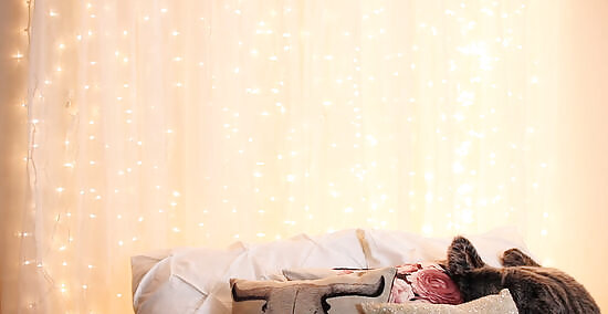 Use different colors. If you want to go with white on white, it creates a really pretty headboard. However, you can also experiment with different color combinations to match your room décor. Choose something that matches your style or rotate the curtains and light colors now and then for a different look. For example, you could use sheer pink curtains with purple mini lights, sheer blue curtains with blue mini lights, or even try some multicolor lights behind a sheer black curtain.