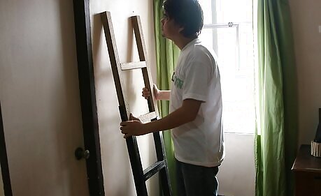 Use a sturdy chair or ladder. Standing on your bed might not give you the height or the stability that you will need to create your headboard, so use a sturdy chair or ladder instead. Push your bed away from the wall and place your chair or ladder next to the wall. You may want to have someone spot you and hold your chair or ladder steady while you hang everything.