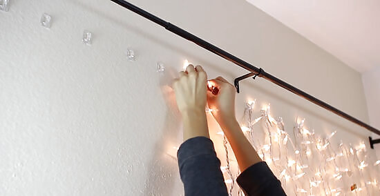 Gather your materials. Making your own light up headboard is simple, as long as you have the right materials. Before you get started, you will need: a curtain rod two 300 light boxes of white mini lights a package of 18 small command hooks two long sheer white curtain panels a sturdy chair or ladder