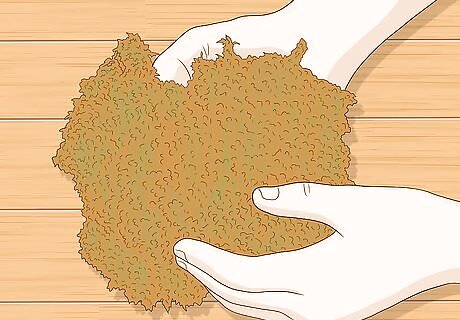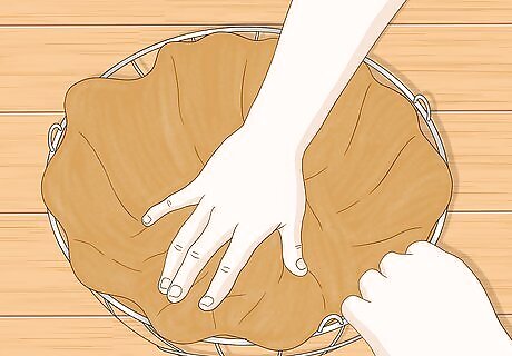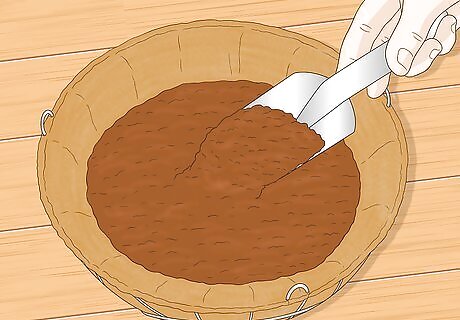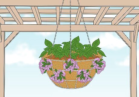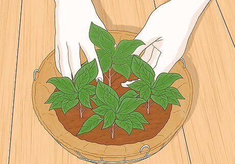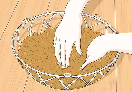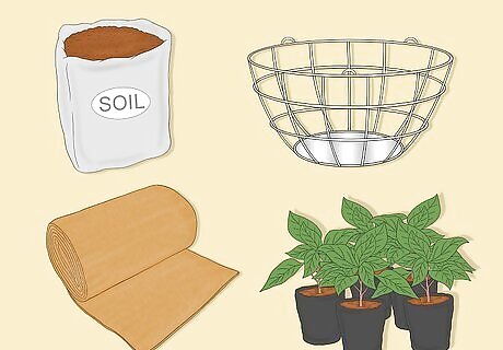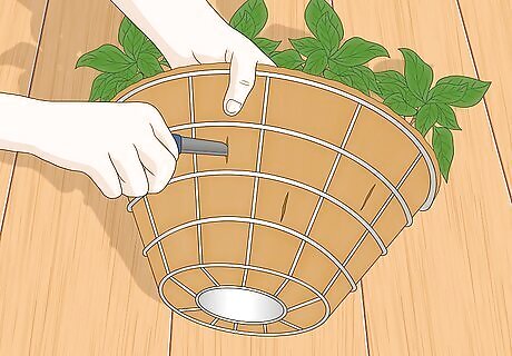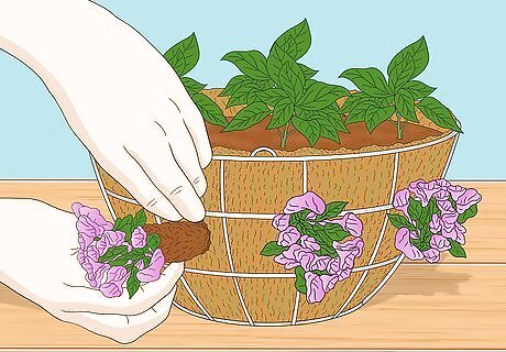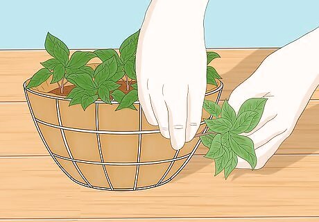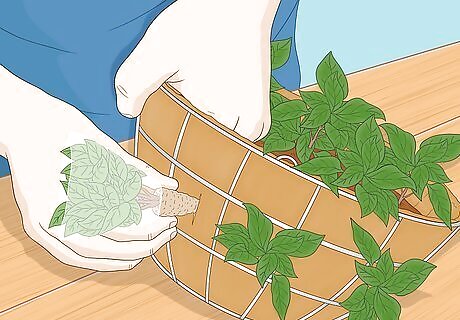 Press the moss in between the wires of the basket. Begin at the bottom and work your way to the top. Make sure it is about two inches thick. If it is too thin, soil can leak out; if it is too thick, there won't be enough room for the plants. Then, put some extra moss on the rim of the basket so that it is completely covered.