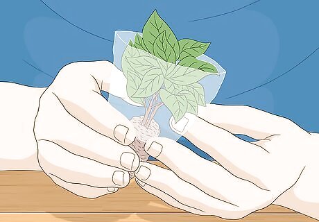 Carefully wrap cellophane around the foliage of the plant to protect the leaves.