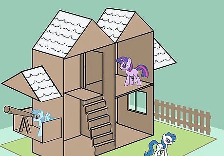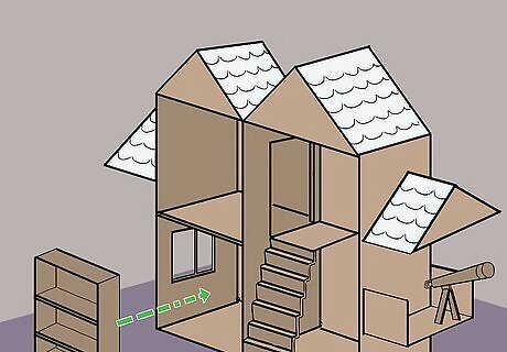 Repeat with the other room next to the room you just used. But this time, make the balcony smaller and a bit higher. Be sure to add a telescope too, which can be made by rolling paper into a cone and gluing it together.