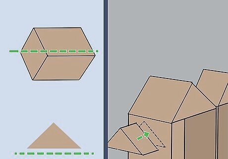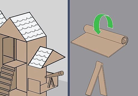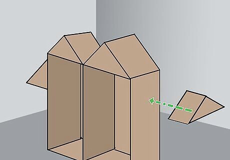 Cut off the edge of the smaller box so that it's shaped like a triangle. Make sure it's like an isosceles triangle, with a long flat end. Glue the long end to one side of the box, and cover it up with paper/papier mâché. The short end should touch the ground. While papier mâché will create a more realistic appearance, paper is easier and less time consuming.