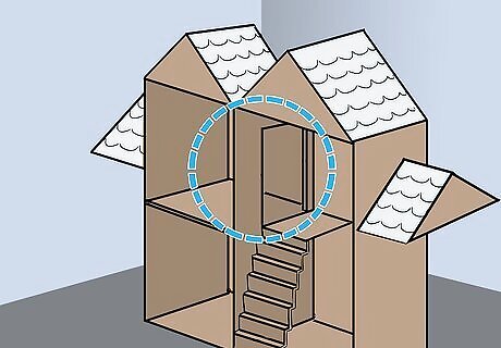 Make a door on the top floor, to where it goes outside of the house. Make a balcony by cutting a semi circle and putting a cardboard fence around it. Glue it just under the door, and arrange the leaves to make room for it, while some still goes underneath the balcony.