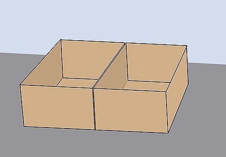Cut out two pieces of cardboard that are the same size as the short end of the boxes. Spread glue on three sides, and slide this piece into the middle of both boxes. Make sure the unglued side is pointing towards you.