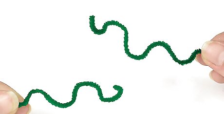 Cut the green pipe cleaner in half. Rest the green pipe cleaner in front of you and estimate where the halfway point is. Then get the craft scissors and cut through the center of the pipe cleaner. It may take a bit of pressure to get the scissors to cut through the pipe cleaner! If you want to get an accurate measurement, measure the pipe cleaner first to find the halfway point.