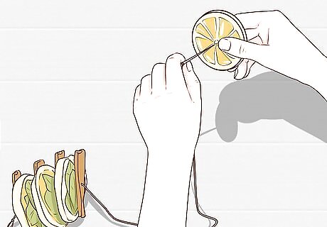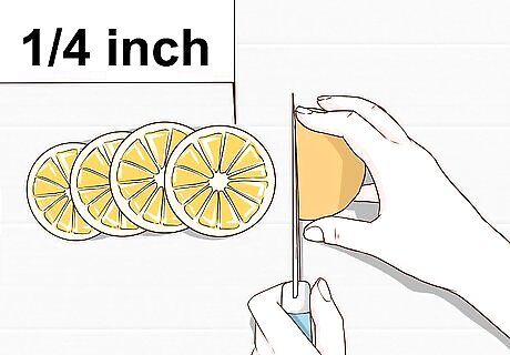 Slice some oranges into ¼-inch (0.64-centimeter) thick slices. How many oranges you end up using depends on your final design and how long you want the final garland to be. Plan on using about 11 oranges for a 4-foot (1.22-meter) garland.