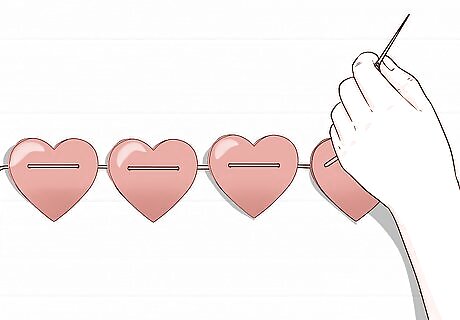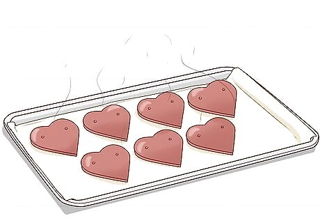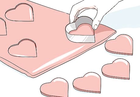 Cut the dough into shapes using cookie cutters. Hearts and stars are very popular, but you can also use circles, leaves, or other shapes.