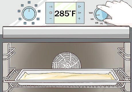 Preheat your oven to 285°F (140°C) and line a baking sheet with parchment paper.