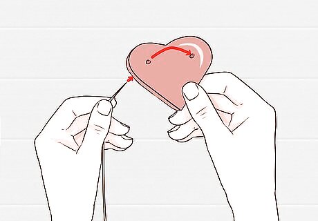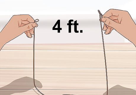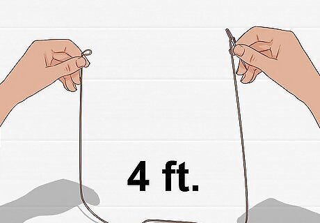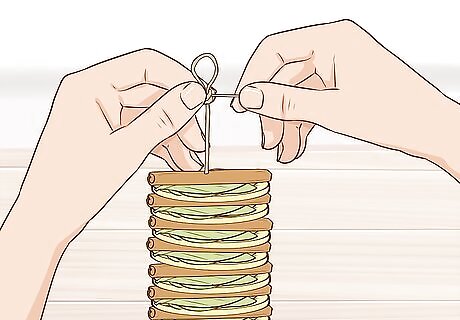 Cut a 4-foot (1.22-meter) garland piece of twine, thread it through a yarn needle, and tie one end into a small loop. The loop does not have to be very big; something big enough for your finger to slip though will be plenty. The loop will help prevent everything from sliding off. It will also allow you to hang the garland up.