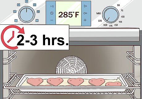 Transfer the ornaments to your prepared baking sheet, then bake them for 2 to 3 hours. After 1 hour, use a spatula to turn the ornaments over. Return them to the oven, and let them baking for another hour, or until they are completely dry. Don't raise the temperature. This will cause the dough to rise and form bubbles.