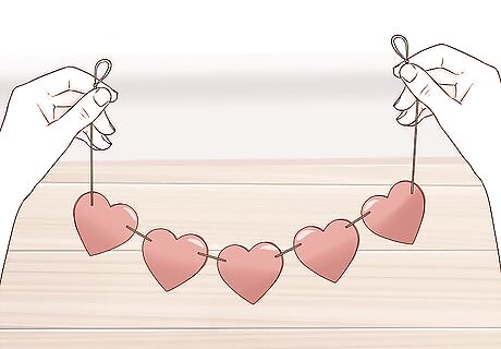 Tie small loops into each end of your garland, then hang your garland up. You can hang it from hooks or nails over a window, doorway, or fireplace mantle. You can also wrap it around a Christmas tree instead.