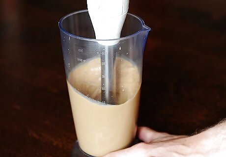 Blend the espresso mixture to create foam. When all of the ingredients are combined, use an immersion blender or a handheld electric mixer to blend the mixture on low. Continue blending until there is quite a bit of foam.